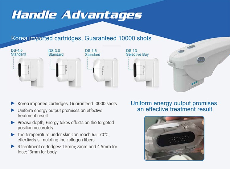 1.5mm, 3mm, 4.5mm tips can treat SMAS, fat layer below skin and corium layer deeply!